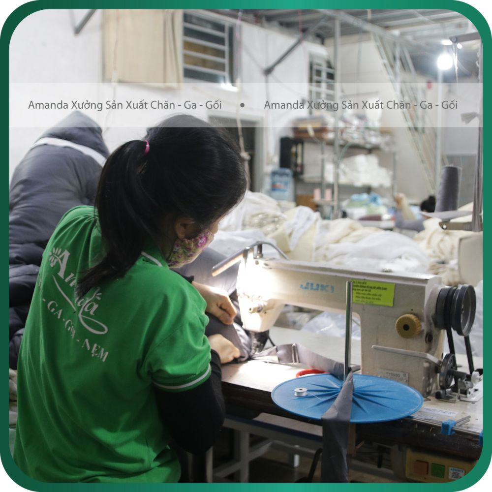 - Sản xuất chuyên nghiệp – tiết kiệm chi phí: Toàn bộ quy trình từ chọn nguyên liệu, dệt vải, may đo, chần bông cho đến kiểm tra, đóng gói đều được thực hiện tại xưởng, giúp Amanda chủ động về chất lượng và giá thành.