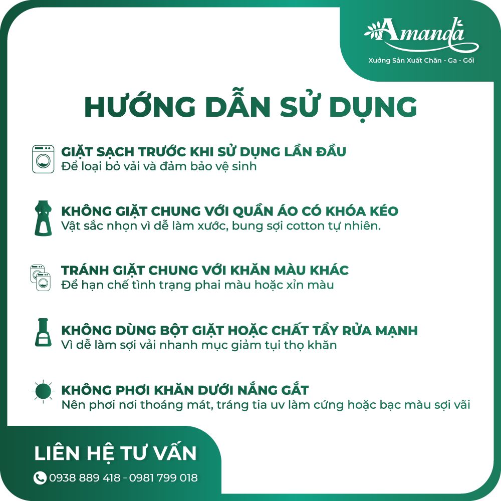 - Giặt sạch trước khi sử dụng lần đầu tiên để loại bỏ bụi vải và giúp khăn đạt độ thấm hút tối ưu.