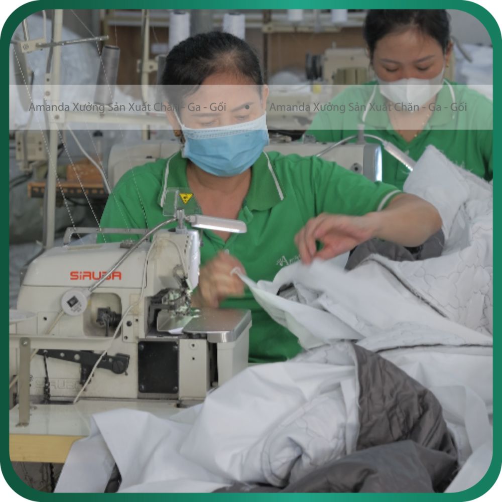 - Sản xuất chuyên nghiệp – tiết kiệm chi phí: Toàn bộ quy trình từ chọn nguyên liệu, dệt vải, may đo, chần bông cho đến kiểm tra, đóng gói đều được thực hiện tại xưởng, giúp Amanda chủ động về chất lượng và giá thành.