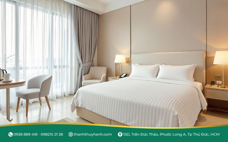 - Tăng trải nghiệm nghỉ dưỡng: Vải cotton T400 giúp khách dễ ngủ sâu, phục hồi năng lượng tốt hơn.
