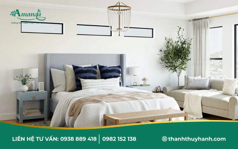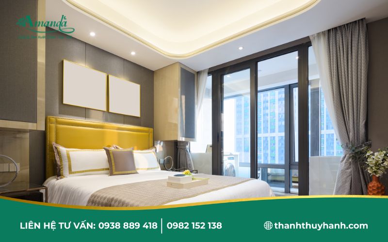 - Giường ngủ trông gọn gàng, tinh tế, mang đến cảm giác sạch sẽ, cao cấp