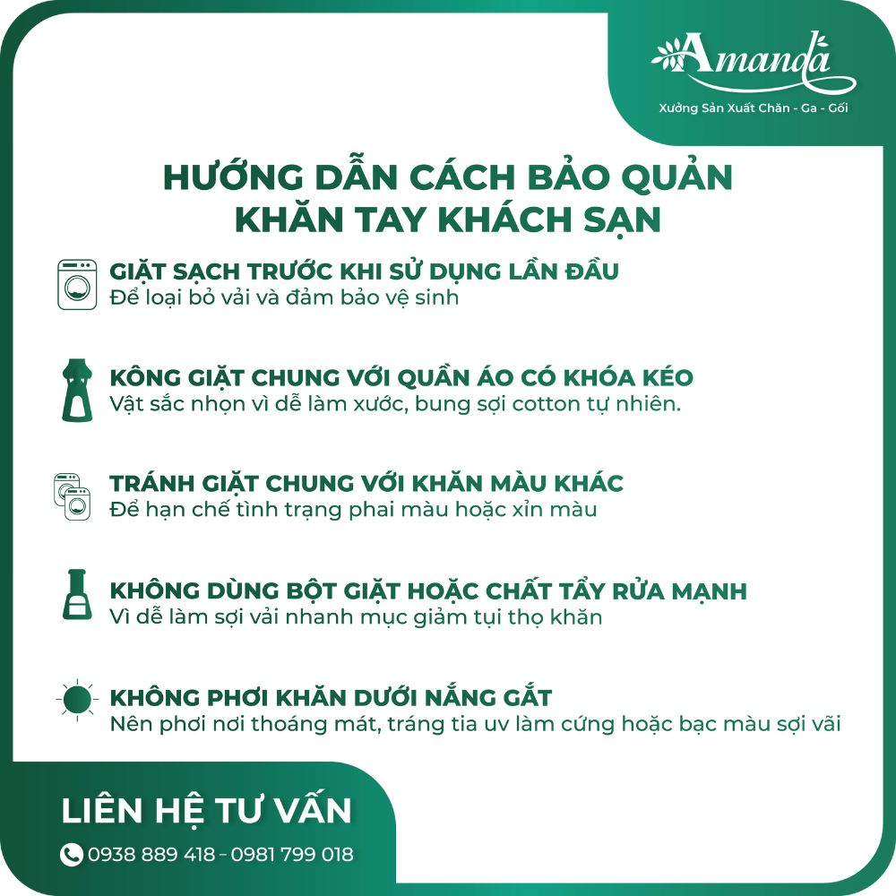 - Giặt sạch khăn trước khi sử dụng lần đầu.
