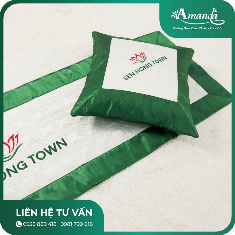 Đặc biệt, khi được thêu tên và logo khách sạn, tấm trang trí còn trở thành công cụ quảng bá thương hiệu tinh tế và hiệu quả. Hình ảnh chiếc giường chỉn chu, sang trọng với tấm trang trí mang dấu ấn thương hiệu không chỉ in sâu trong tâm trí khách hàng, mà còn dễ dàng được lan tỏa rộng rãi qua lời giới thiệu hay những bức ảnh chia sẻ trên mạng xã hội. Đây chính là cách khách sạn khẳng định sự chuyên nghiệp và nâng tầm giá trị thương hiệu trong mắt hàng triệu khách hàng tiềm năng.