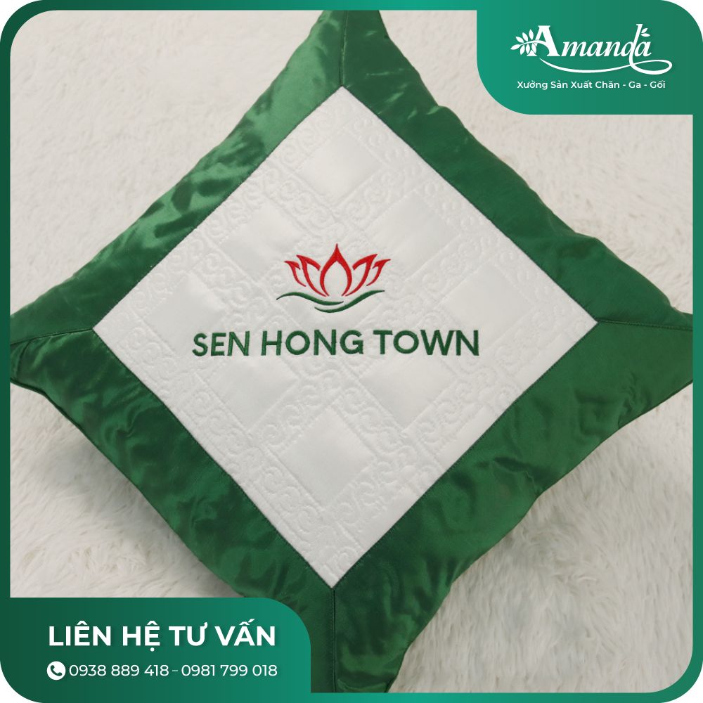 Mỗi tấm trang trí được thiết kế theo tone màu chủ đạo của khách sạn, có thể thêu logo hoặc tên thương hiệu, giúp tăng khả năng nhận diện và tạo ấn tượng chuyên nghiệp ngay từ cái nhìn đầu tiên. Vải Tafta cao cấp kết hợp lớp gòn mỏng nhẹ giúp form dáng chắc, phồng vừa phải và giữ màu lâu dài sau nhiều lần giặt.