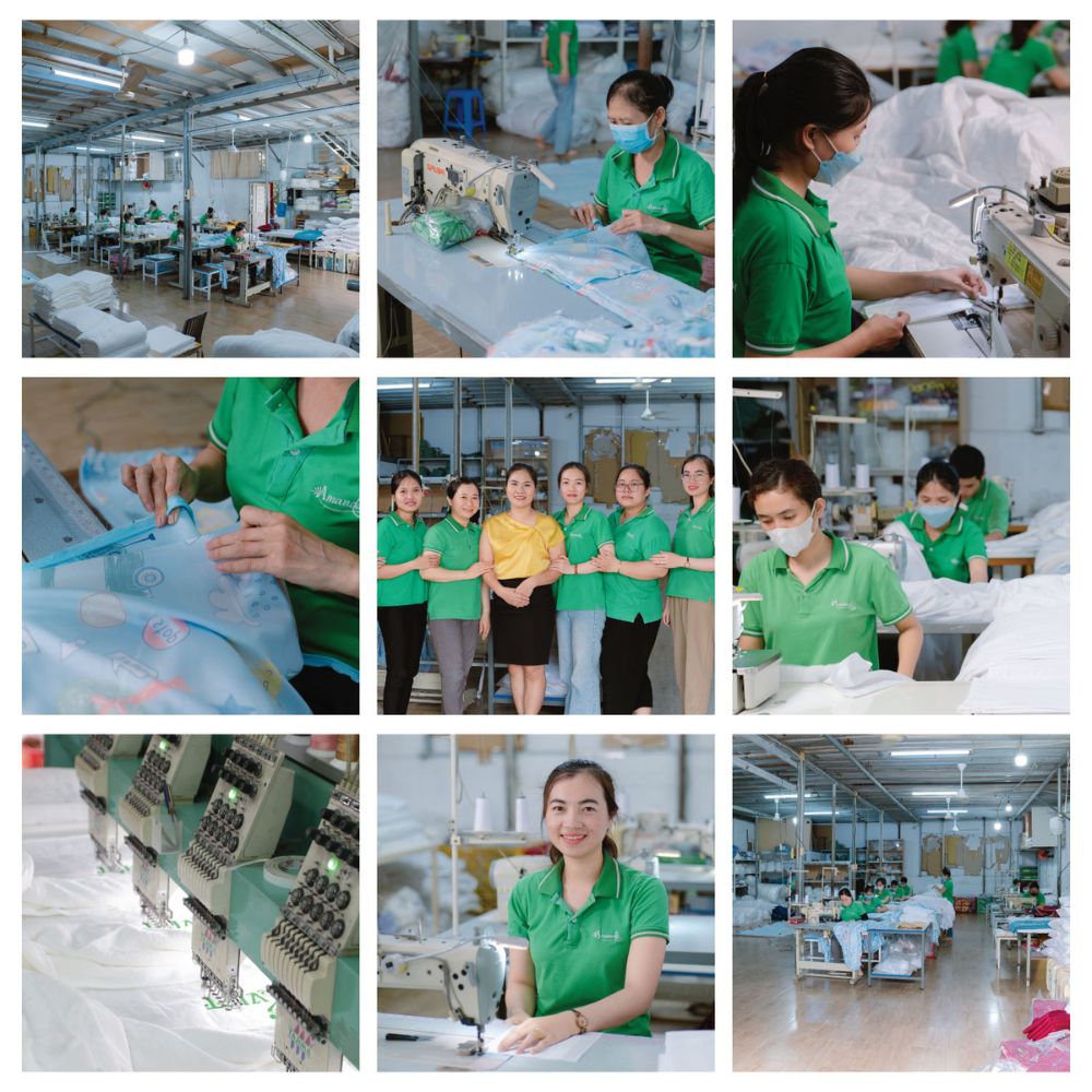 - Sản xuất chuyên nghiệp – tiết kiệm chi phí: Toàn bộ quy trình từ chọn nguyên liệu, dệt vải, may đo, chần bông cho đến kiểm tra, đóng gói đều được thực hiện tại xưởng, giúp Amanda chủ động về chất lượng và giá thành.